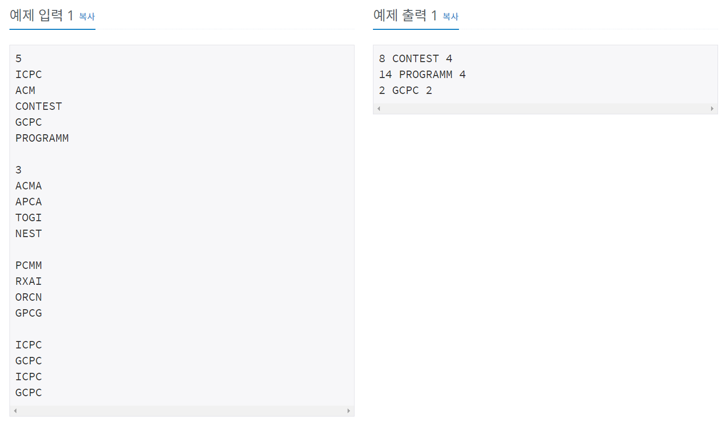 여러가지 알고리즘이 혼합되어 있는 형태이기때문에 작은 실수만 해도 어려워 질수 있었던 문제였다. Trie와 다른 알고리즘을 같이 사용해볼 수 있던 좋은 문제였던 것 같다.