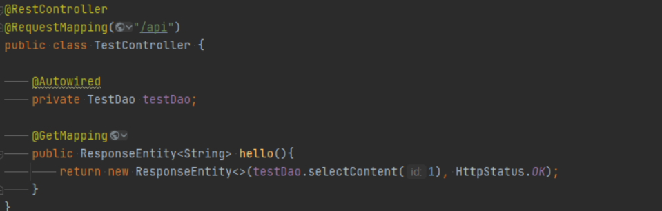 앞서 정의한 testDao의 selectContent 메소드를 출력해보기 위해 테이블에 값을 넣고 Test용 Controller를 구성해주었다. 그 후 서버를 실행시킨 후 값을 원하는 값을 확인할 수 있었다.