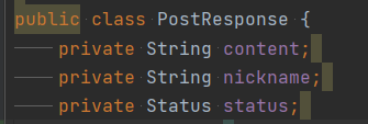 DTO에 가지는 변수를 Status Enum 형으로 선언해주었다.