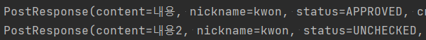 그 결과 DB에 저장된 1, 2가 Springboot에선 각 각 APPROVED, UNCHECKED로 나오는 것을 확인 할 수 있었다.