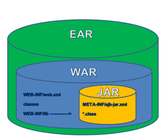 EAR란 Enterprise Archive의 줄임말로써 .ear 확장자를 가지는 파일이다. 한 개 이상의 모듈을 단일 아카이브로 패키징하여 애플리케이션 서버에 동시에 일괄적으로 올리기 위하여 사용하는 포멧이다.