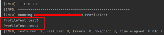 다음 방법으로 application.properties에 선언한 값과 @EanbledIf, @DisabledIf 어노테이션을 활용해보았다. 우선 Maven Profile을 다음과 같이 구성해주었다.