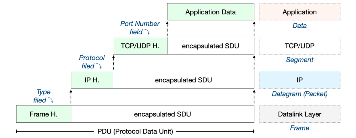 이메일 & 파일 전송, 웹 사이트 조회 등 애플리케이션에 대한 서비스를 제공. | Data | HTTP, FTP, DNS, DHCP, SMTP | |