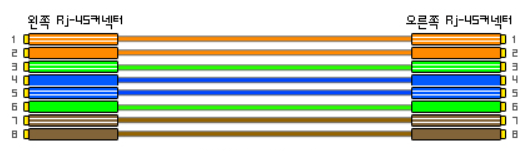 다이렉트 케이블은 구리 선 여덟 개를 같은 순서로 커넥터에 연결한 케이블. 컴퓨터와 스위치를 연결할 때 사용.