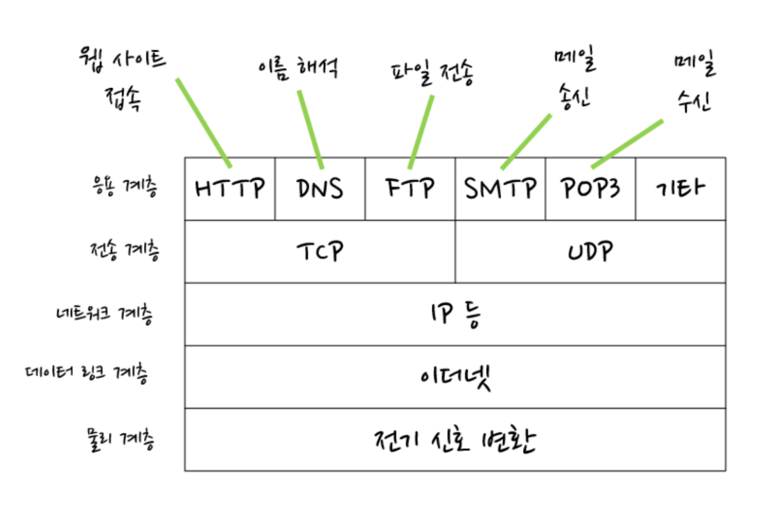 OSI 7계층 중 7계층, 최상위 계층으로써 다양하게 존재하는 응용 환경에서 공통적으로 필요한 기능을 담당. 시스템 상호간 통신하면서 일련의 업무를 처리할 수 있도록 필요한 서비스 기능을 제공. 이메일, 파일 전송, 웹 사이트 조회등 애플리케이션에 대한 서비스를 제공하는 계층. 클라이언트의 요청을 전달하기 위해 서버가 이해할 수 있는 데이터로 변환하고 전송 계층으로 전달하는 역할을 수행. 따라서 프로토콜이 필요함.