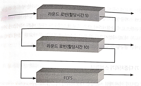 멀티레벨 큐에서는 여러개의 준비 큐에 대해서 어느 큐에 먼저 CPU를 할당할지 결정하는 스케줄링 또한 필요하게 된다. 따라서 큐에 고정적인 우선순위를 부여해 우선순위가 높은 큐를 먼저 서비스하고 우선순위가 낮은 큐는 우선순위가 높은 큐가 비어 있을 때에만 서비스하는 우선순위 방식 스케줄링을 보통 사용한다. 그 외에는 고정 우선순위 방식도 사용한다.
