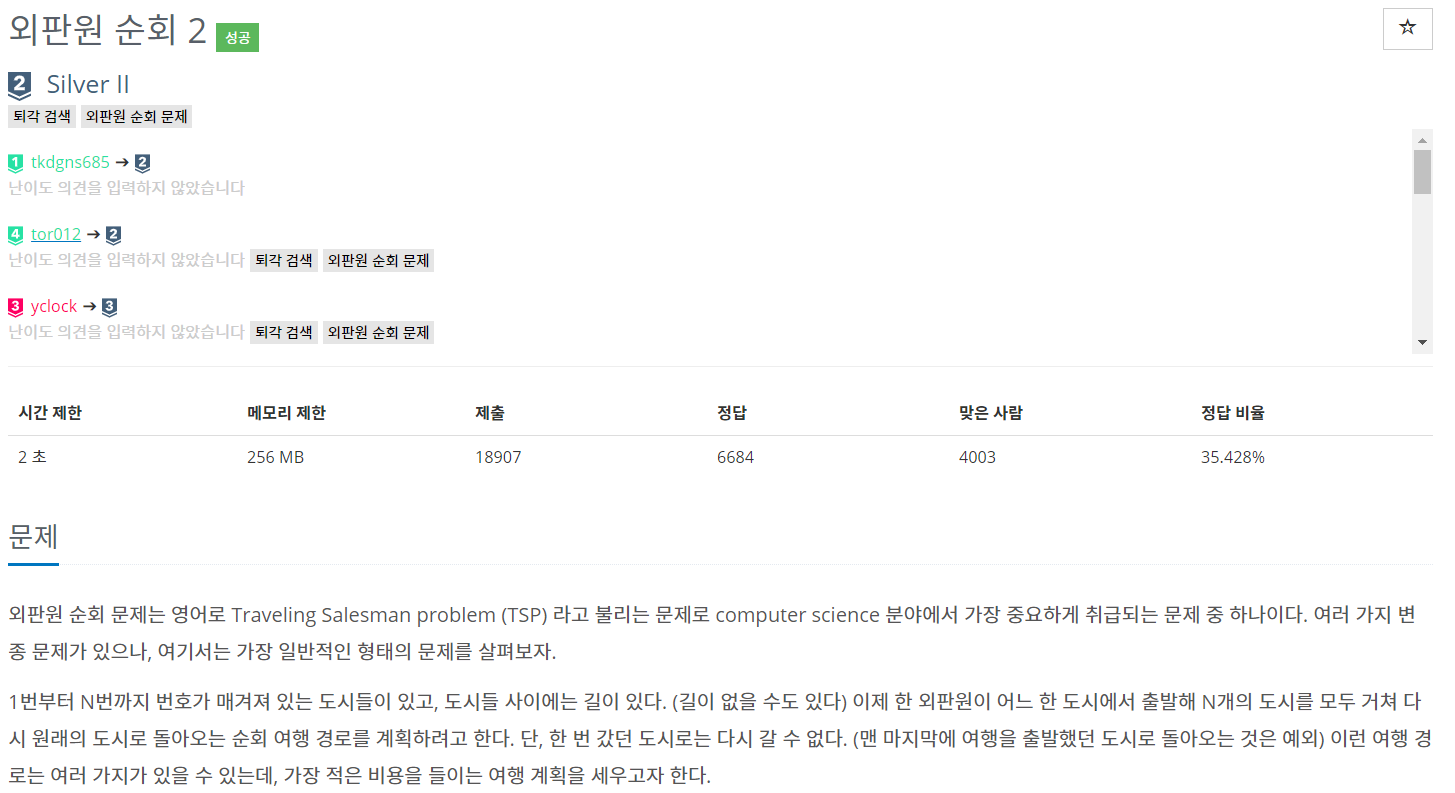 perm라는 순열을 구하는 함수를 작성하였다. 여기서 arr라는 배열을 준비하여 각 인덱스 마다 도시의 번호로 지정하고, result라는 배열을 이용하여 도시들을 방문하는 경우의 수를 구하였다. result 배열이 전부 준비되었을 때 서로 도시끼리 갈 수 있는지 여부를 체크하면서 최종적으로 돌아오는 경우까지 계산하여 최종 답을 구하였다.