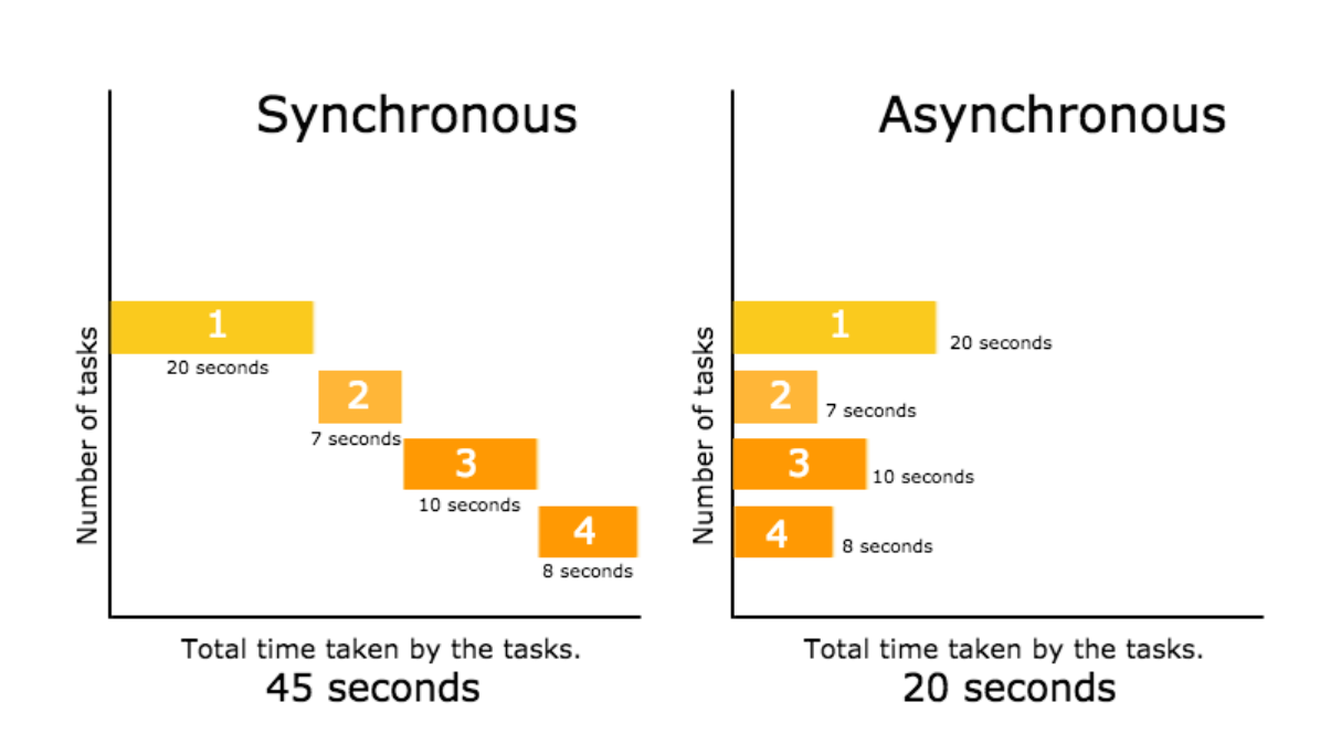 동기와 비동기의 차이는 호출되는 함수의 작업 완료를 신경쓰는지의 여부차이이다. 즉 작업을 수행하는 2개이상의 대상에 대해 다음 작업이 요청되는 시간과 관련이 있다.