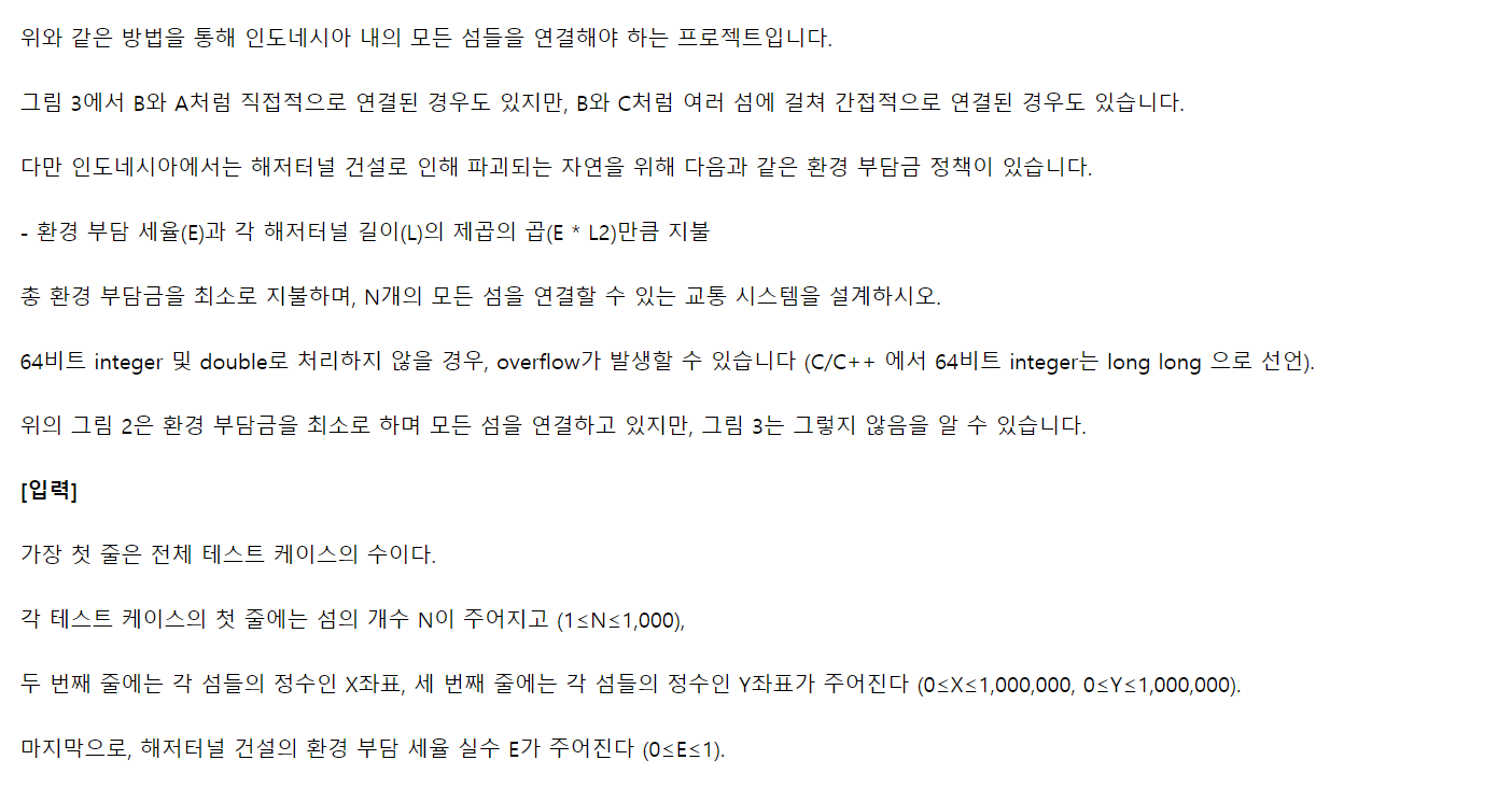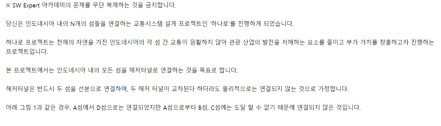 하나로 문제는 간선을 기준으로 하는 Kruskal알고리즘을 선택하여 풀었고, UnionFind 함수를 같이 사용하여 해결하였다. UnionFind를 잠시 본다면 parents 배열을 이용하여 각 V마다 자기자신을 부모로 초기화해준다음, findSet() 함수로 주어진 V에 대한 부모를 찾을수 있게 해주었다. 또한, union()함수를 이용하여 하나의 부모로 합쳐주는 작업도 수행하였다.
