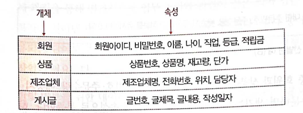 개념적 설계 단계에서 가장 먼저 수행하는 작업은 요구 사항 분석 단계의 결과물인 명세서에서 개체를 추출하는 작업이다. 개체는 저장할 만한 가치가 있는 중요 데이터를 지닌 사람이나 사물이며 개념적 모델링에서 중요한 요소이며 개체 부터 결정이 되어야 속성과 관계도 결정할 수 있게 된다. 보통 명세서의 명사를 기준으로 개체와 속성으로 나눌 수 있다.