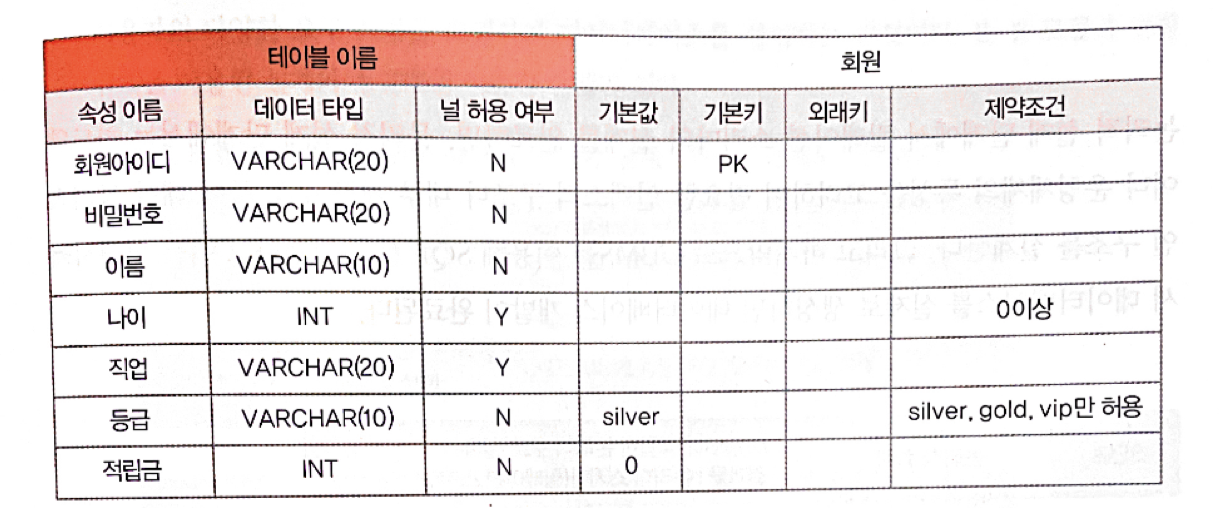 따라서 릴레이션 스키마를 기준으로 위와 같은 테이블 명세서 작업이 최종적으로 필요하다.
