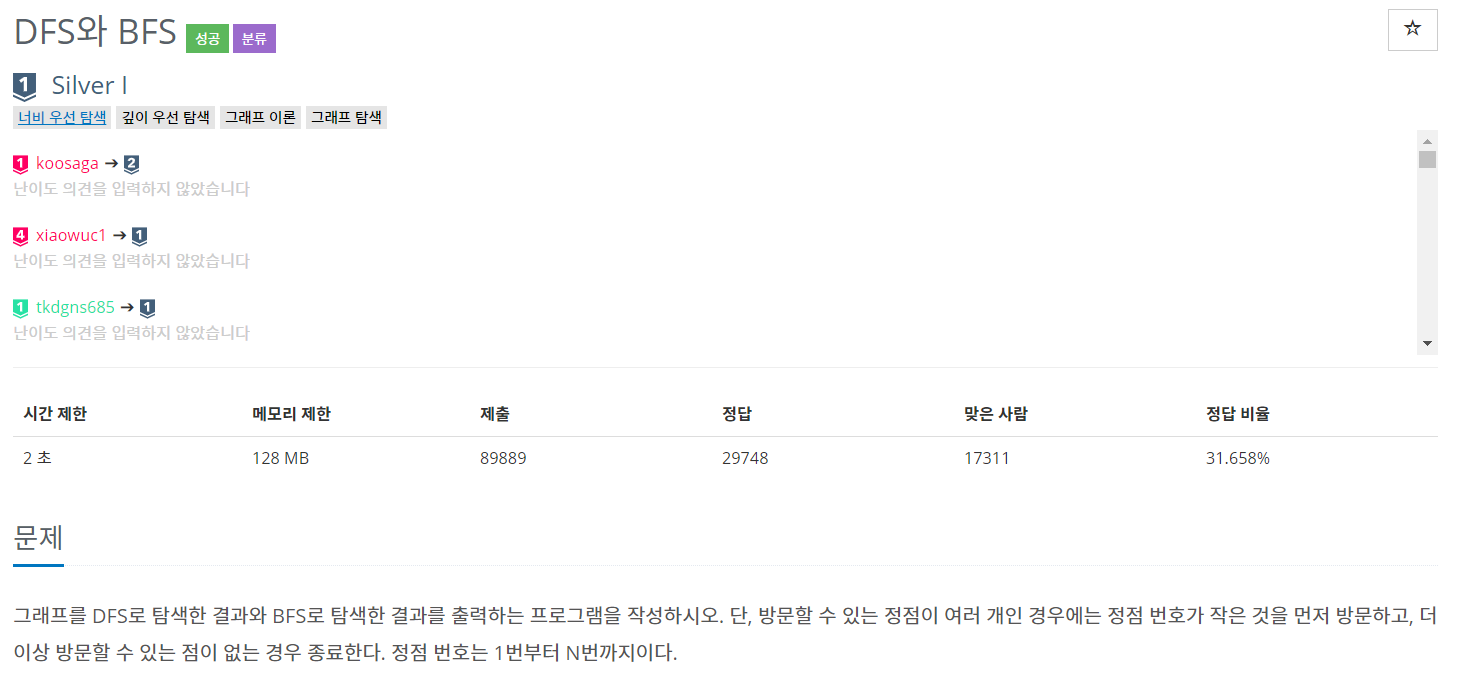 그래프를 사용하여 DFS와 BFS를 하는 기본 문제이다.