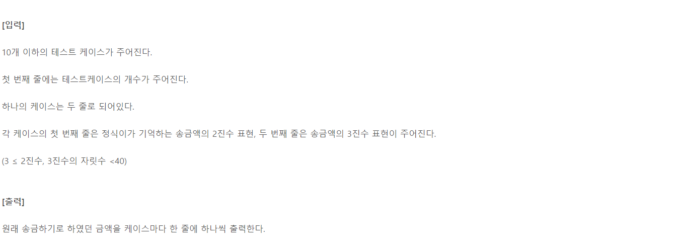 진법변환에 대해선 10진수를 다른 진수로 바꾸려면 Integer.pasrseInt(Num,N진법수) 와 같은 형태로 바꿀수 있지만 다른진수에서 10진수의 형태로 바꾸려면 직접해주는게 편할 수 있다.
