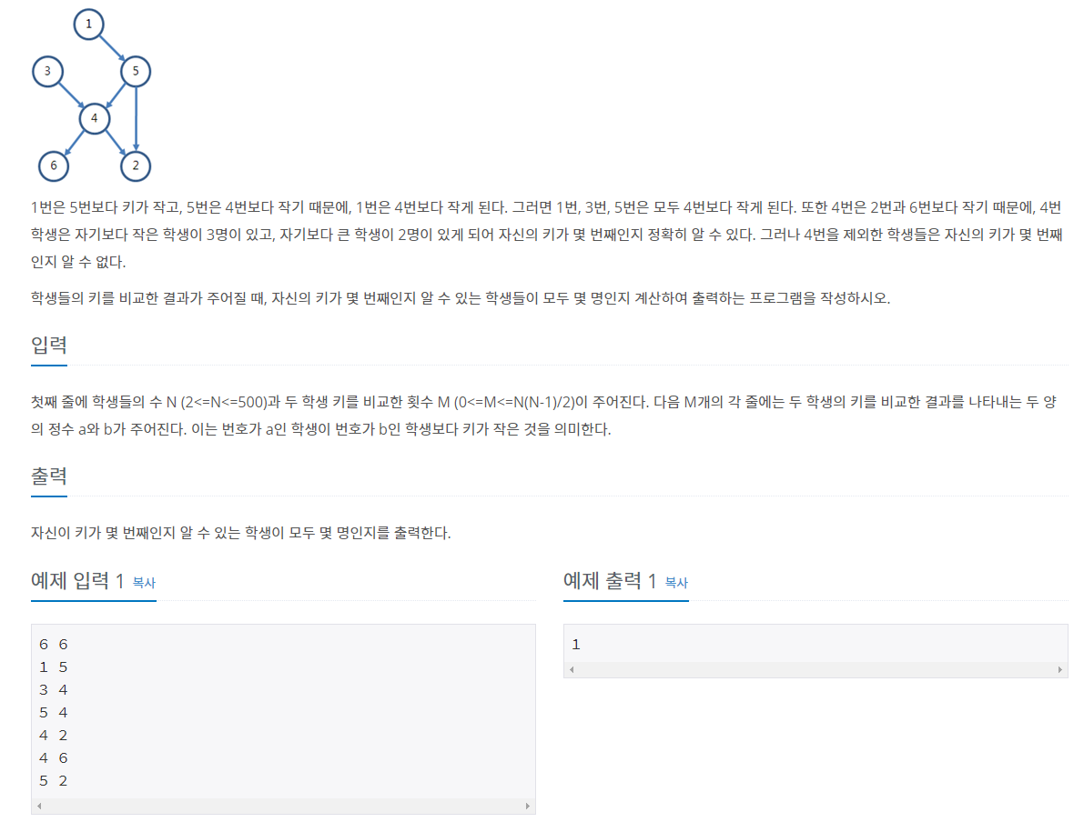 유향 그래프이기때문에 하나의 정점을 기준으로 1.정방향 DFS, 2.역뱡항 DFS 둘다를 거쳤을 때 모든 정점을 방문한형태를 나타낸다면 자신의 위치를 알고있는 정점으로 간주할수 있게되는 성질을 이용하여 풀었다.