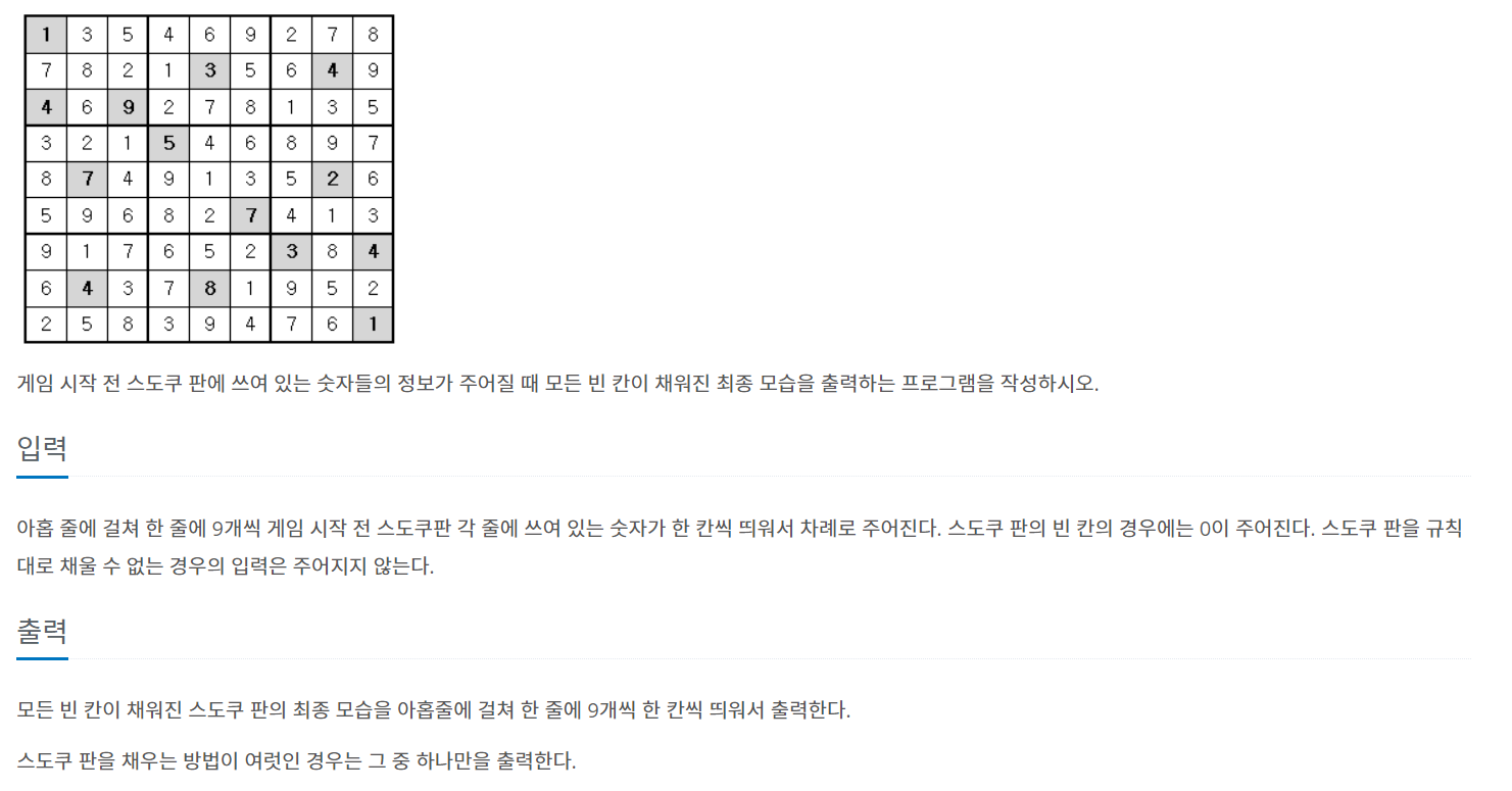 백트래킹을 이용하여 빈칸의 숫자를 확인해가는 문제이다.